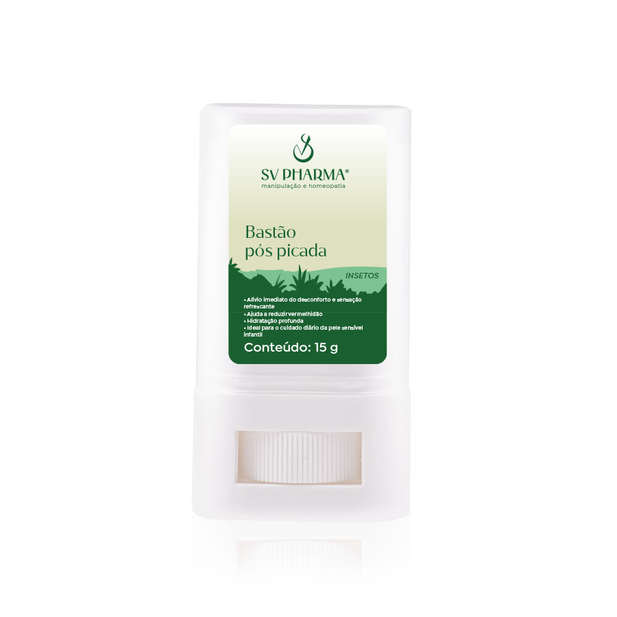 O Bastão Pós-Picada SV PHARMA foi desenvolvido para proporcionar alívio rápido, seguro e eficaz da pele sensibilizada por picadas de insetos. Sua fórmula reúne ativos naturais cuidadosamente selecionados, que atuam de forma sinérgica para acalmar, refrescar, hidratar e favorecer a regeneração da pele.