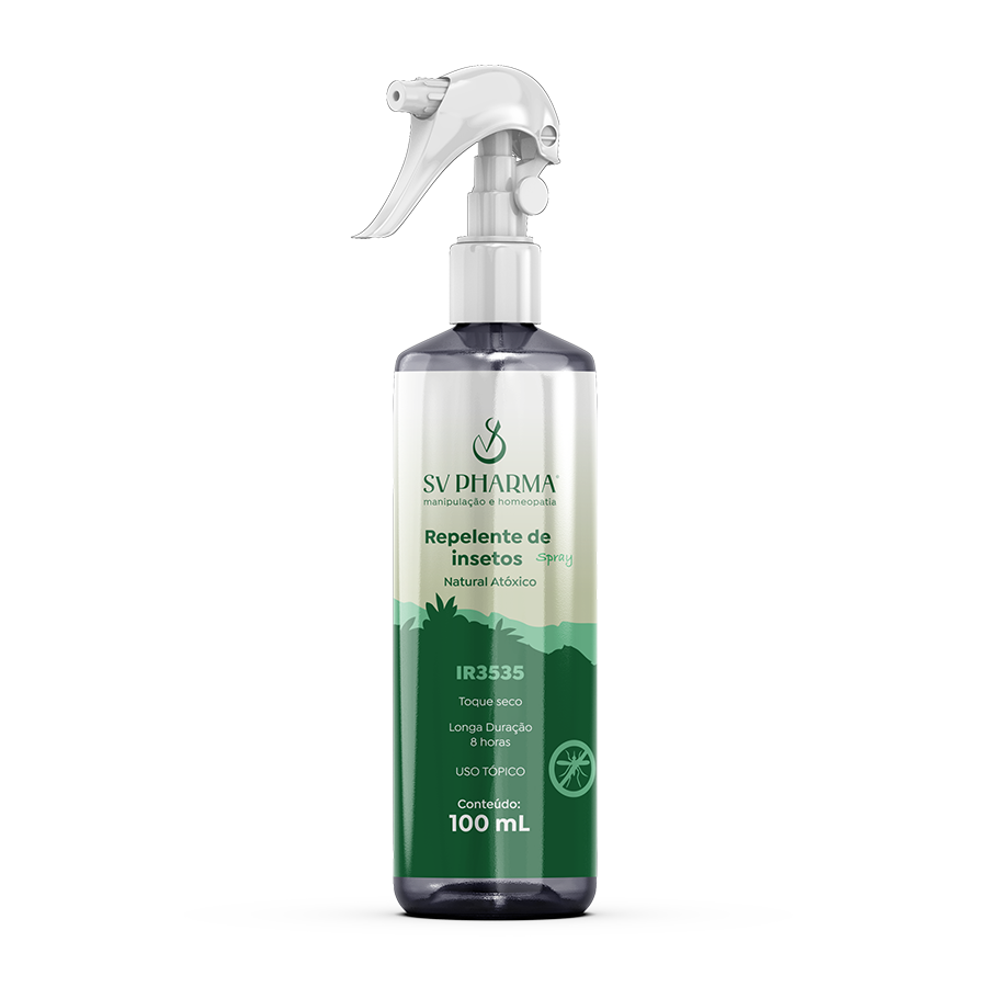 O Repelente Spray SV PHARMA contém IR3535 (ethyl butylacetylaminopropionate) a 15 % m/v, ativo desenvolvido a partir da beta-alanina, aminoácido natural que age como barreira olfativa contra mosquitos (Aedes, Anopheles, Culex), carrapatos, moscas e piolhos. Recomendado pela Organização Mundial da Saúde, IR3535 alia alta eficácia e excelente tolerabilidade, sendo ideal para gestantes, lactantes e crianças acima de 6 meses.