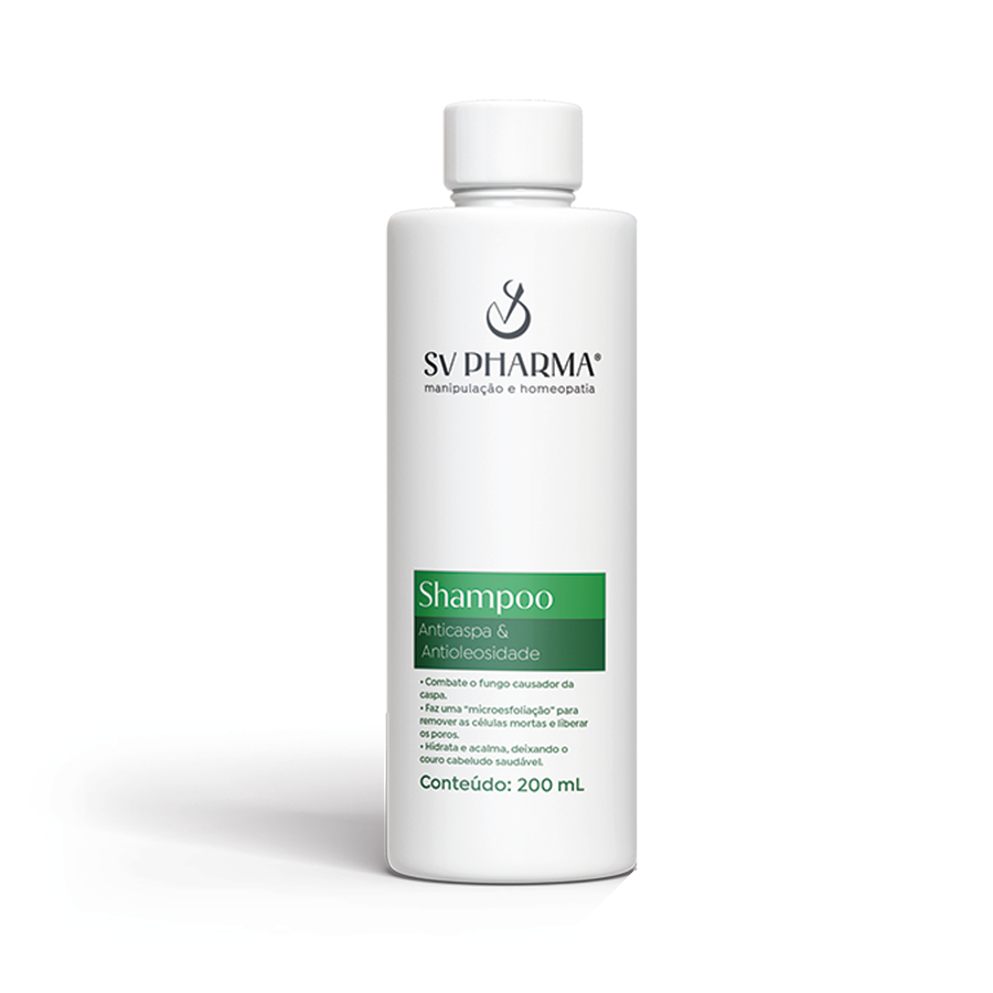 O Shampoo Anticaspa e Antioleosidade SV PHARMA foi especialmente desenvolvido para proporcionar uma limpeza eficaz e equilibrada, tratando a caspa desde a primeira aplicação e ajudando a controlar o excesso de oleosidade. Com ativos de ação comprovada, o produto combate os micro-organismos causadores da caspa e promove uma esfoliação suave, auxiliando na renovação celular do couro cabeludo. Enriquecido ainda com óleo essencial de hortelã-pimenta e extrato de aloe vera, proporciona sensação de frescor, hidratação e conforto imediato.
